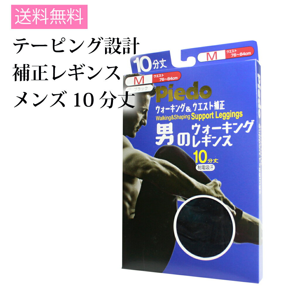 送料無料 男のウォーキング レギンス 10分丈 黒 ブラック メンズ 男性 男 着圧 テーピング ウエスト 補正 レガルト メール便 stp